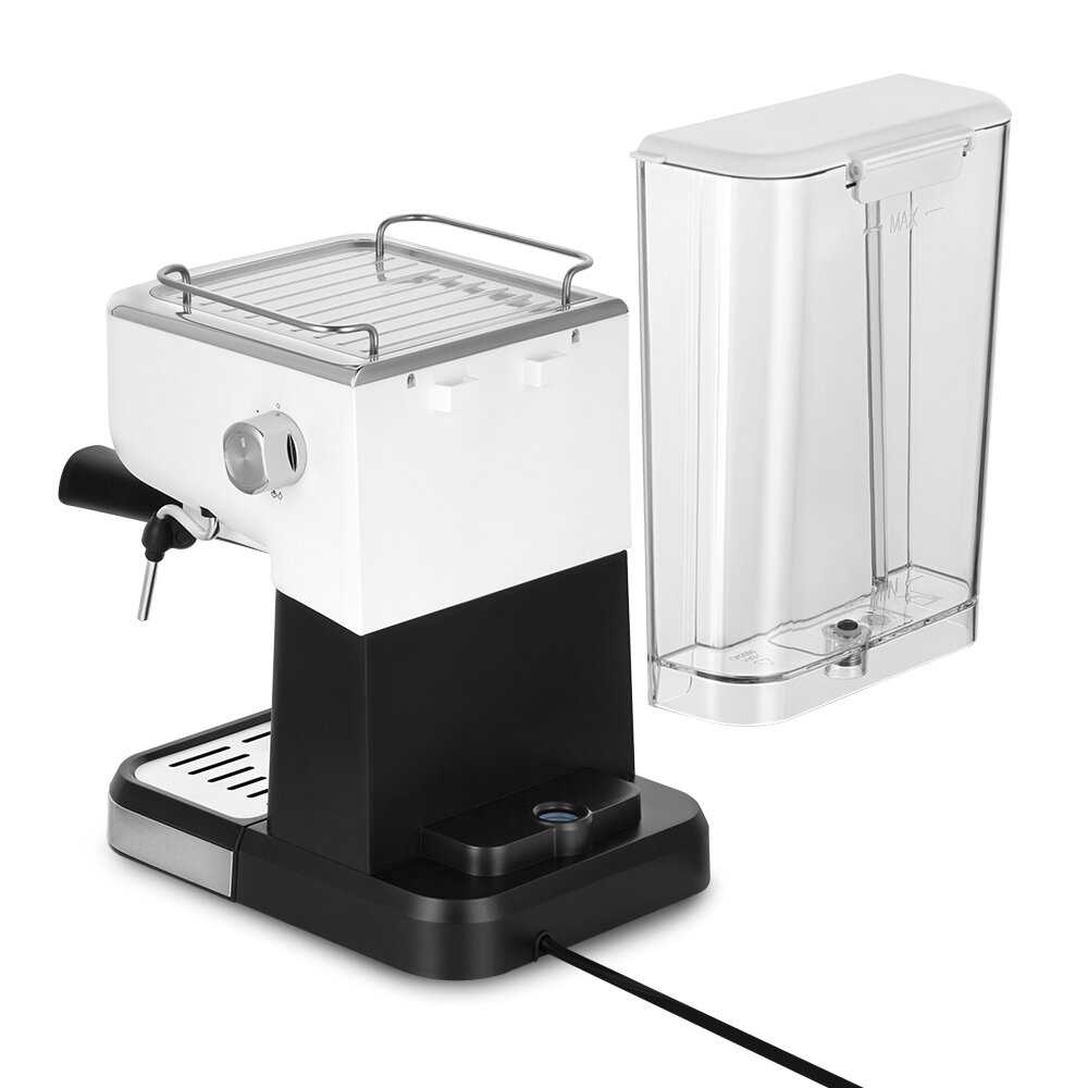 Конструкция включает съемный резервуар для воды значительного объема, что позволяет приготовить несколько порций без долива. Рожковый держатель плотно фиксируется, обеспечивая герметичность и предотвращая протекание во время экстракции. Дополнительно предусмотрена площадка для подогрева чашек, что поддерживает температуру напитка до момента подачи. -
