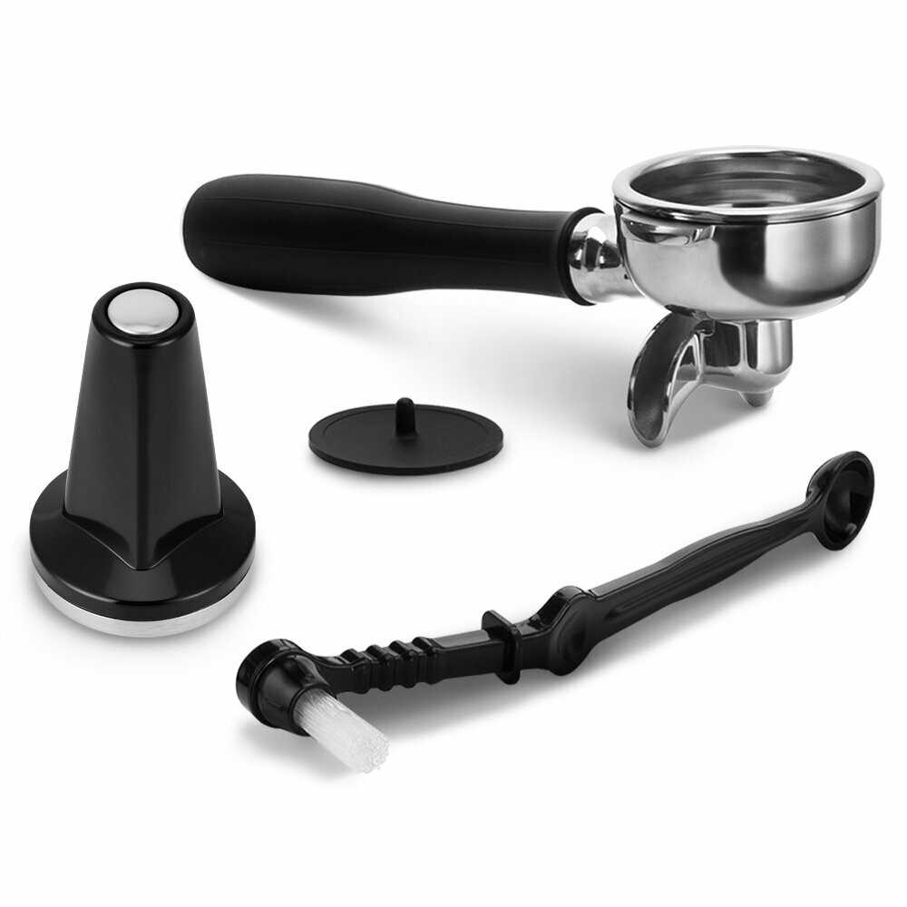 Аксессуары в комплекте: Темпер, фильтр и щеточка для чистки делают уход за кофеваркой проще и удобнее.