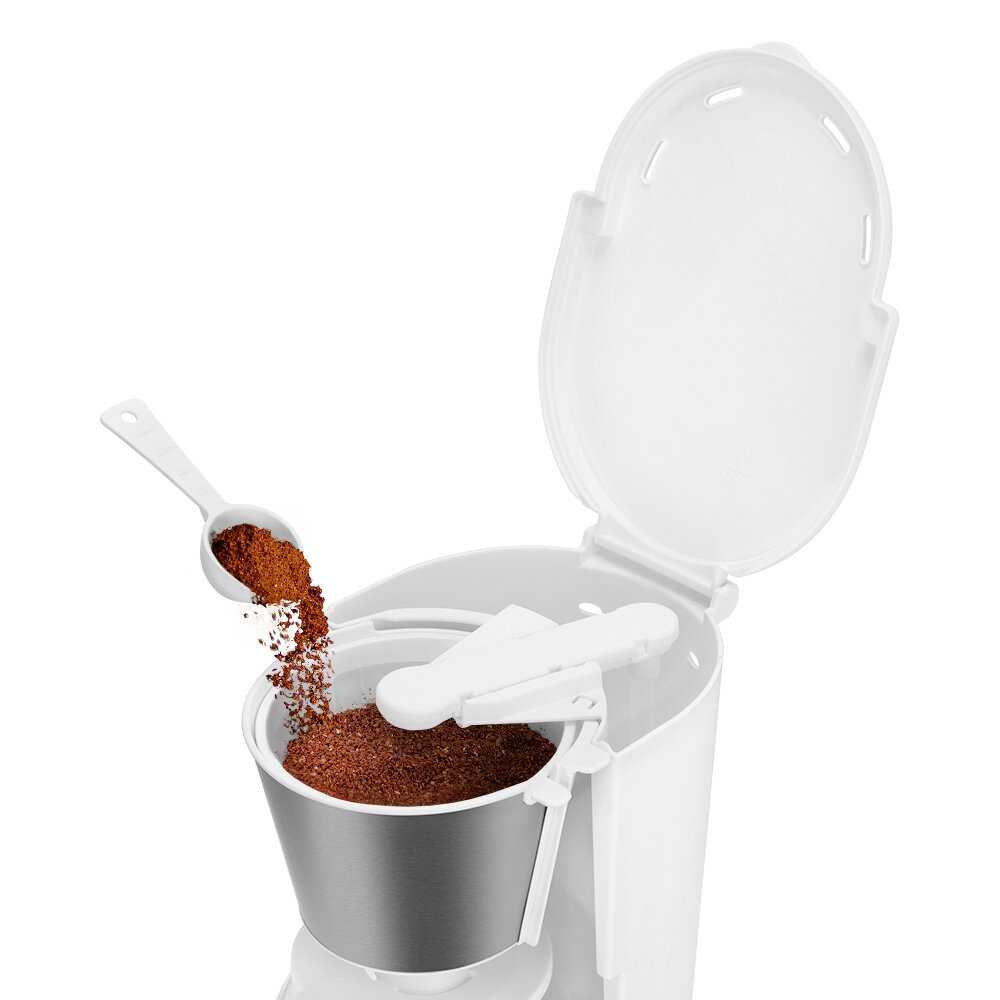 Многоразовый фильтр очень удобен - - Так как кофеварка выполнена в белом цвете, пластик со временем становится коричневым