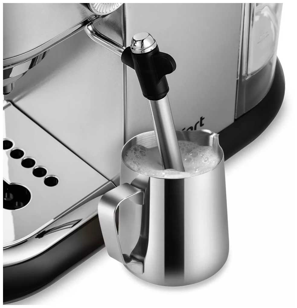 быстро варит вкусный и ароматный кофе благодаря давлению в 15 бар. Эспрессо получается хорошим. Резервуар для воды легко снимается и надевается обратно.