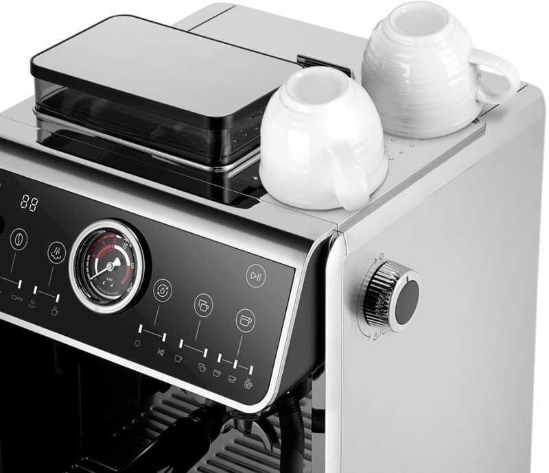 - + Можно почувствовать себя настоящим бариста! Удобство и в станции качественной кофемолки и хороший стимер с форсункой. И стимер для кипятка отдельно. Симпатично и приятно выглядит.