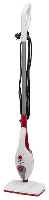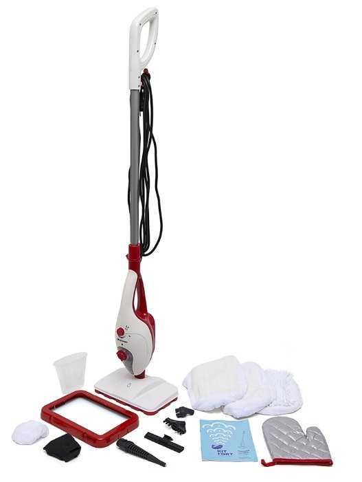 Пользуюсь данной шваброй уже третий год, поэтому имею возможность быть объективной. Швабра служит верой и правдой при нечастом использовании, примерно пару раз в неделю, иногда чаще. Телескопическая ручка у швабры съёмная и лёгким движением руки она превращается в многофункциональный ручной отпариватель. Отлично моет полы, но не рекомендую использовать на ламинате и, тем более, паркете - струя пара достаточно мощная. Единственный недочёт это то, что резервуар для воды расположен внизу и мыть под шкафами и тумбами попросту невозможно. Использую швабру для чистки ковров ( в комплекте есть две специальные тряпки), это очень большой плюс и ковры больше не нужно отвозить в химчистку, точно так же как и одеяла, подушки, пледы. Она прекрасно отпаривает, и даже чистит одежду, но только в горизонтальном положении и для этого также имеется специальная насадка. Если отпаривать в вертикальном положении то устройство можно испортить, поскольку нагревательный элемент находится внутри резервуара и при вертикальном положении он оголяется а вода стекает вниз. Можно использовать для чистки окон, в комплекте есть насадка для стекла, но я бы не рекомендовала этого делать - весь герметик будет выбит и расплавлен паром, а заодно можно повредить и уплотнитель. Вот для чистки кафеля и сантехнического фаянса будет просто отлично. И самый большой плюс это то, что не нужно никаких синтетических моющих средств, швабра прекрасно справляется со всеми загрязнениями, избавляет помещение от посторонних запахов и создает атмосферу чистоты и свежести. Для аллергиков такой девайс попросту незаменим!