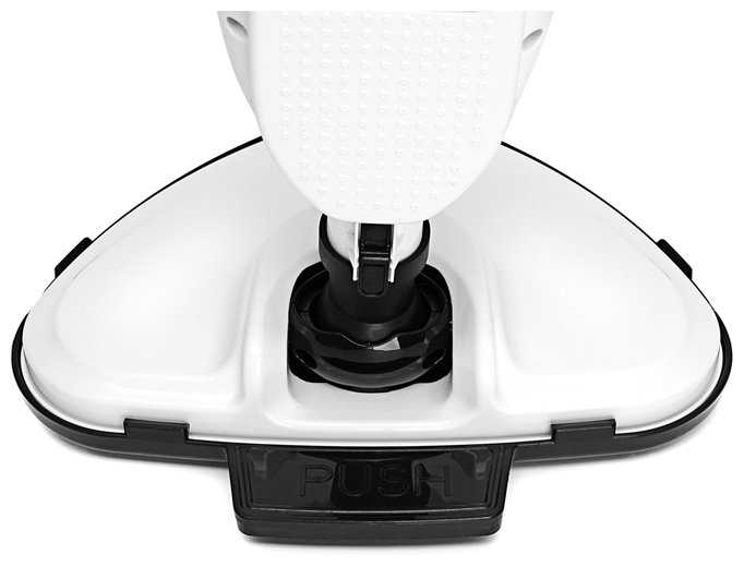 - Треугольная насадка с микрофиброй проникает в углы, а телескопическая ручка (регулируется до 120 см) позволяет мыть без наклонов.