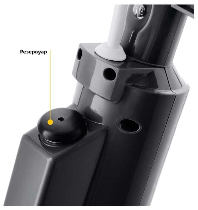 - Резервуар несъемный — для заполнения необходимо наклонять швабру.