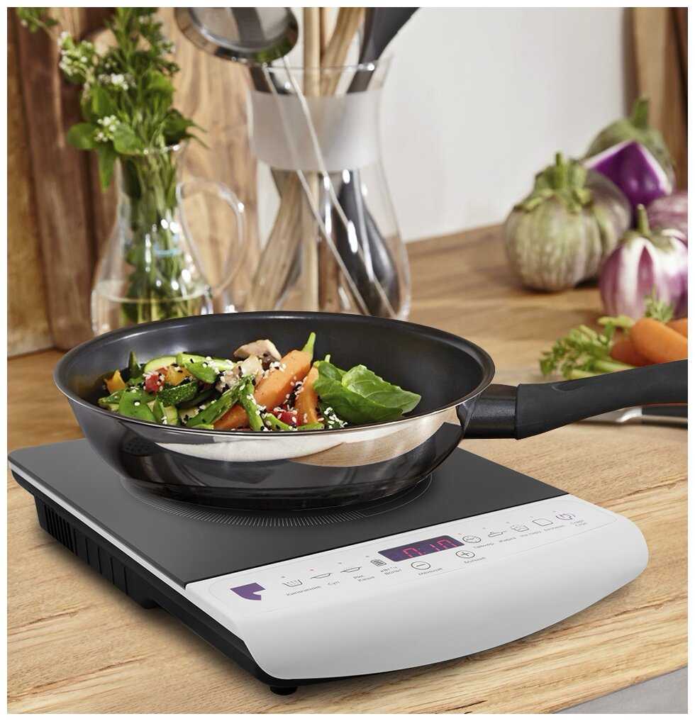 В отличие от обычных электроплит, индукция нагревает только посуду, а не воздух. Это удобно в жару или маленьких кухнях. После готовки поверхность остывает за 2–3 минуты, что безопасно для детей и животных. -