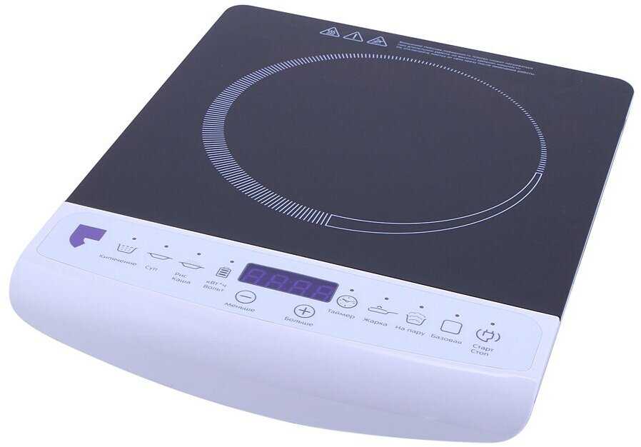 - Поверхность не нагревается вне зоны контакта с дном посуды, снижая риск ожогов.