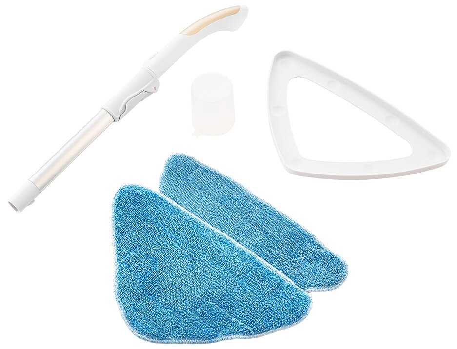 - Включает две микрофибровые тряпки на липучках, насадку для ковров и мерный стакан, что позволяет сразу начать уборку (большинство ценит за отсутствие допрасходов).