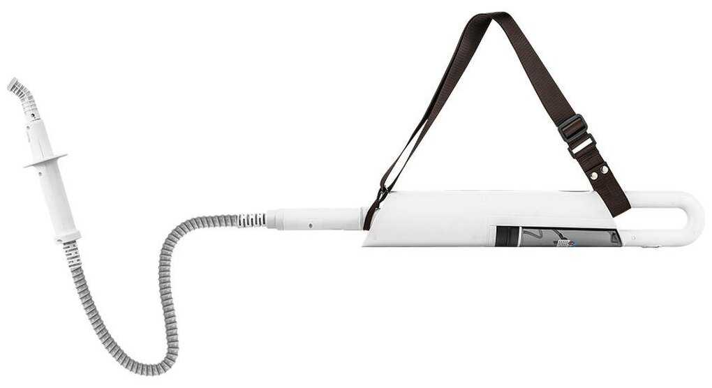 - Ремень на плечо снижает нагрузку на запястья при длительной уборке (вес устройства — 3.2 кг).