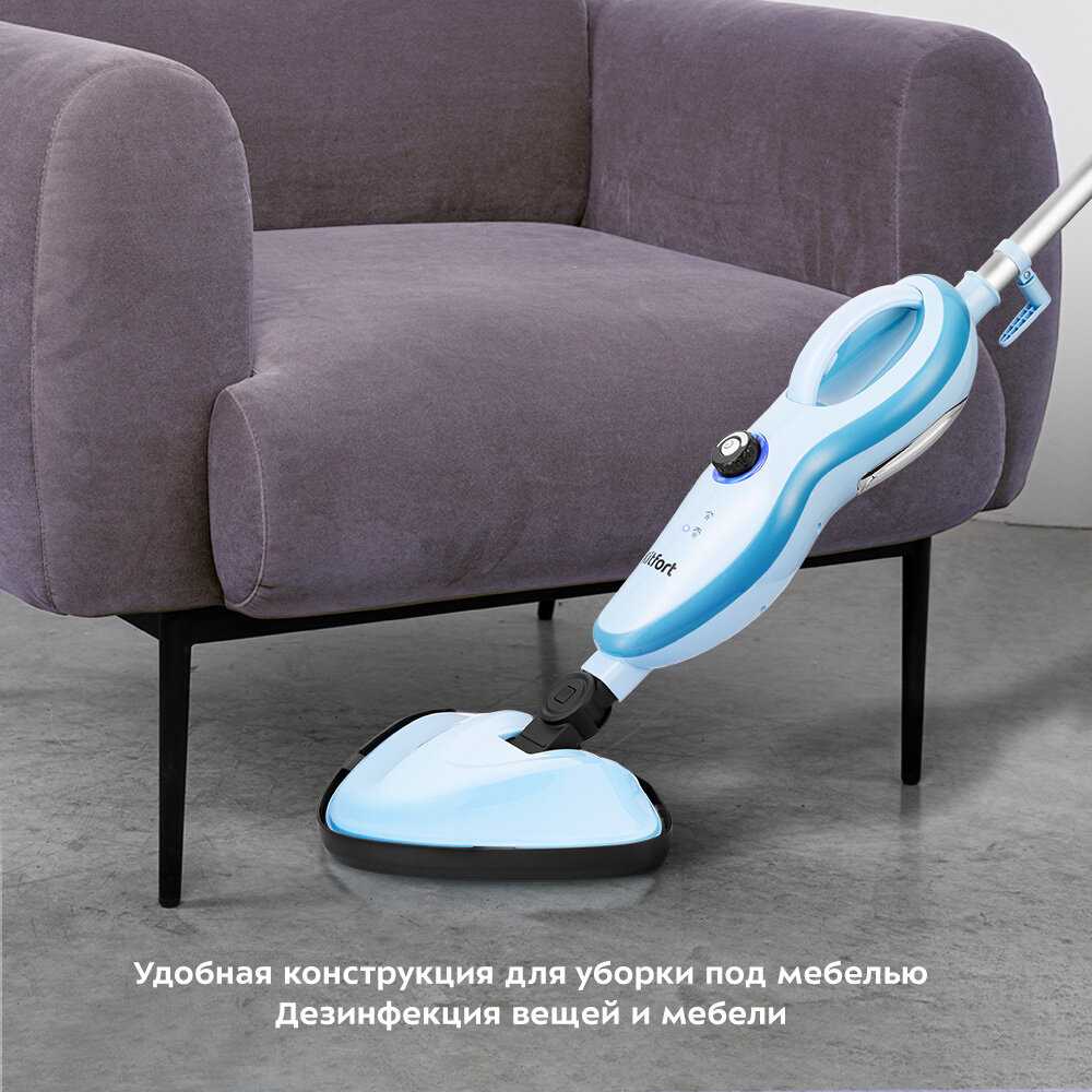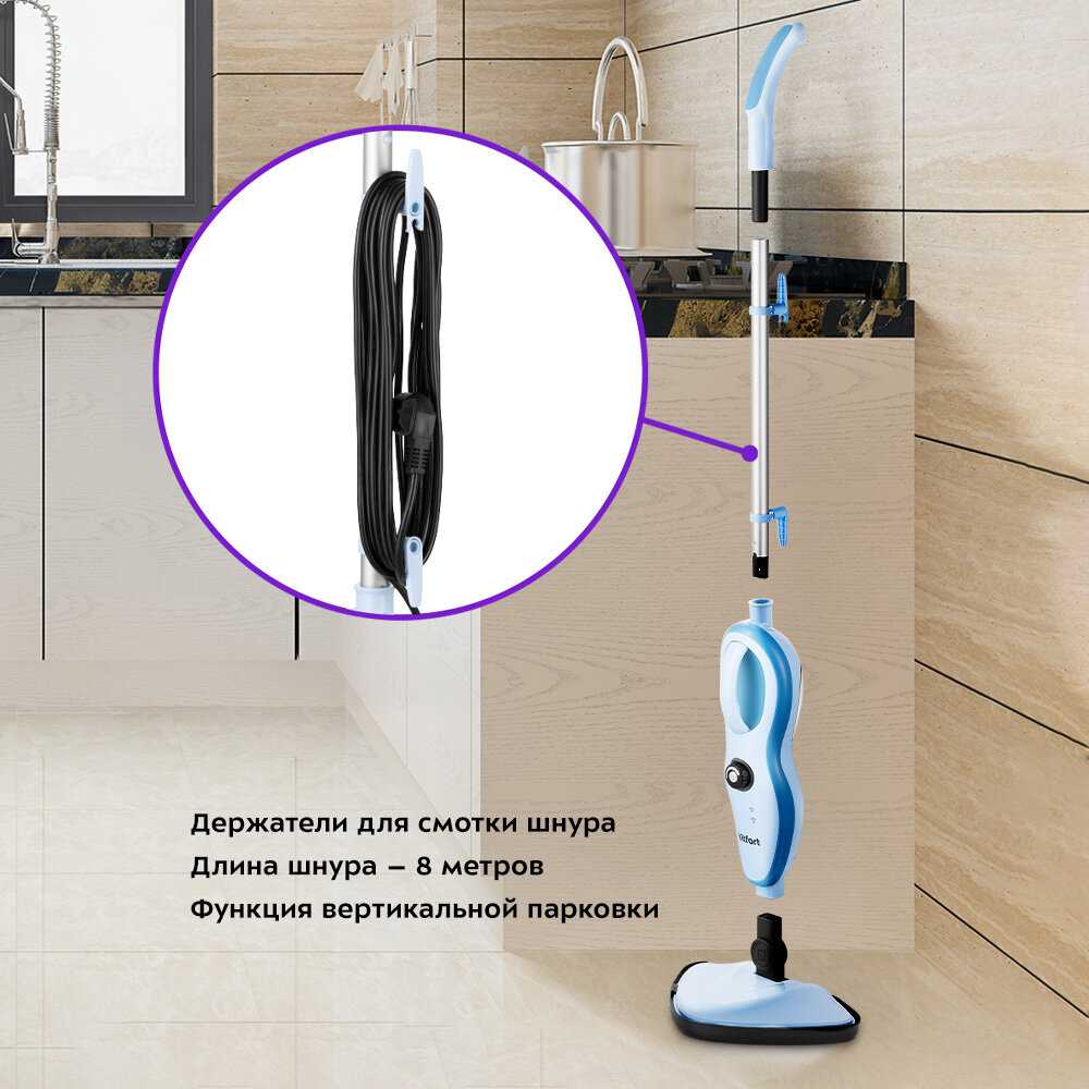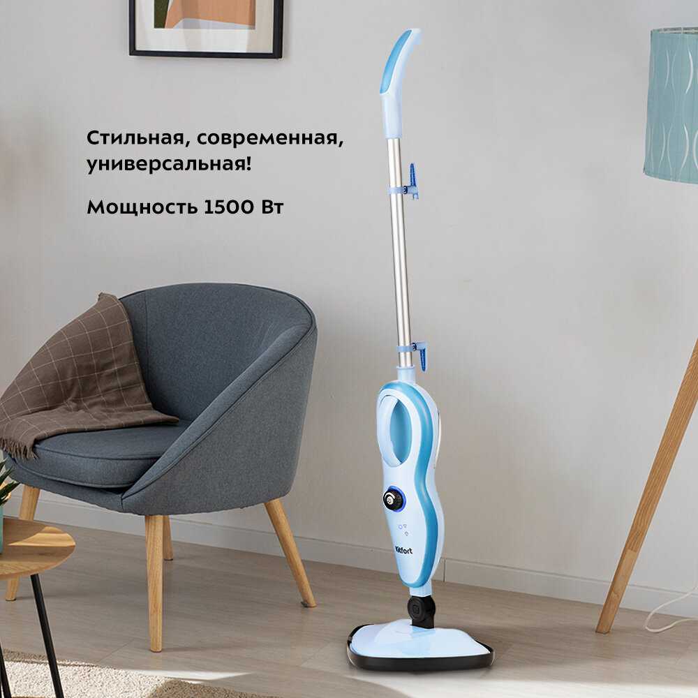 - + Достаточно плотная подача пара и цена данной паровой швабры