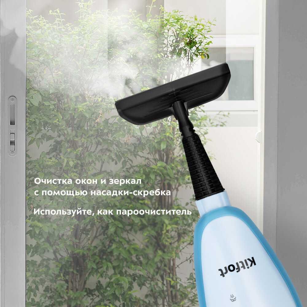 Когда используешь как пароочиститель, тяжеловат. Хочется, чтобы с внутренней стороны была ручка, а то приходится просто держать на открытой ладони. Пробовал отчистить окна маленькой щеткой,в уголках налилась пыль после ремонта (от распиливания плитки) - отчистилось отлично. Насадку для мытья стёкол не особо оценил, узкий скребок, руки устают после первого же окна. Для плитки хорошо подходит.