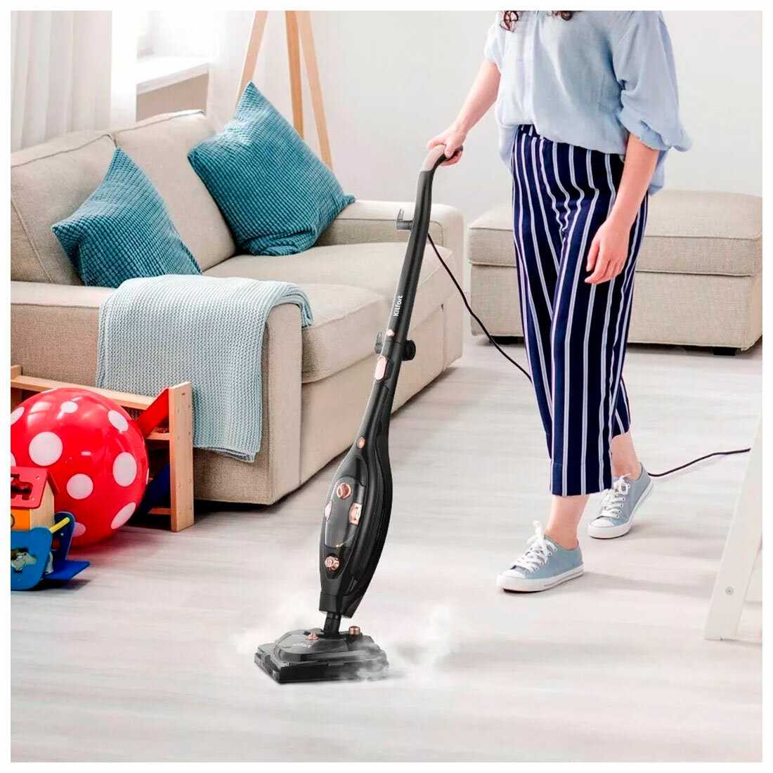 - + Очень удобна в использовании. Интуитивна понятна в управлении. Лёгкая и подвижная. Полы моет превосходно, гораздо лучше чем просто тряпкой. Много различных полезных насадок. Отмывает даже застарелые пятна грязи. Можно отмыть весь дом, куча применений. Очень классно что можно использовать моющее средства. Качественный пластик и цена очень приятная
