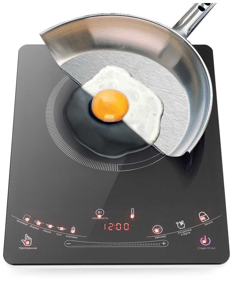 При готовке сама плитка вокруг кастрюли или сковороды почти не нагревается, плюс есть блокировка кнопок, что для меня было очень важно из-за маленького ребенка. Поверхность очень легко мыть.