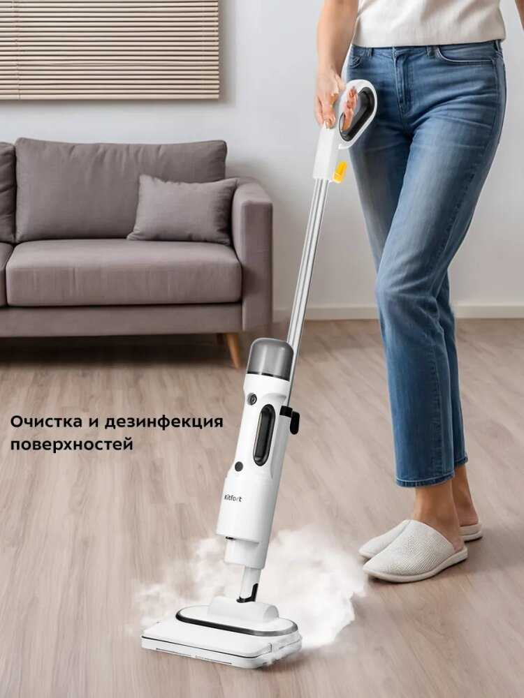 2. Универсальность. Швабра 2 в 1 позволяет не только мыть полы, но и использовать ее как ручной отпариватель для чистки ковров, мебели или даже стекол. Это действительно многофункциональное устройство!