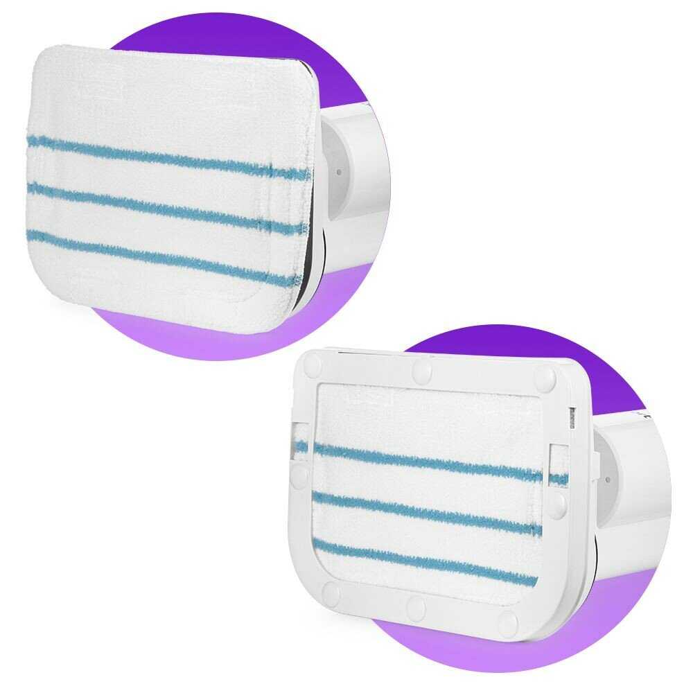 Съёмный резервуар и насадки упрощают чистку и сушку после использования. Компактная конструкция с автономной стойкой экономит место, не требуя креплений к стене. Запасная тряпка в комплекте продлевает интервалы между стирками основной насадки. -