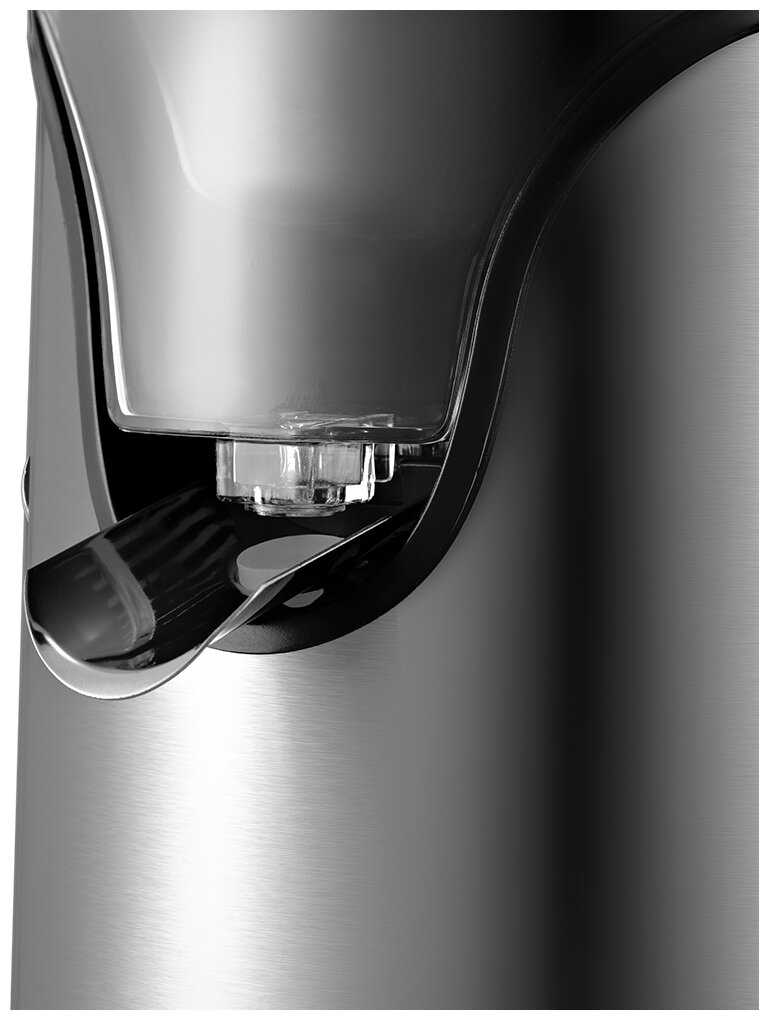 - Носик автоматически блокирует поток сока при смене стакана, предотвращая проливание.