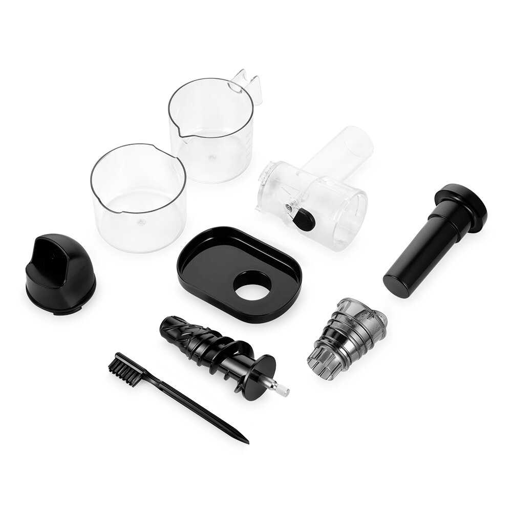 - + Очень довольна покупкой. Компактная и бесшумная соковыжималка, не занимает много места. Также легко разбирается, моется и собирается. По расходу: на 500 мл уходит 5-6 яблок/апельсинов. Но получается отличный натуральный фреш!