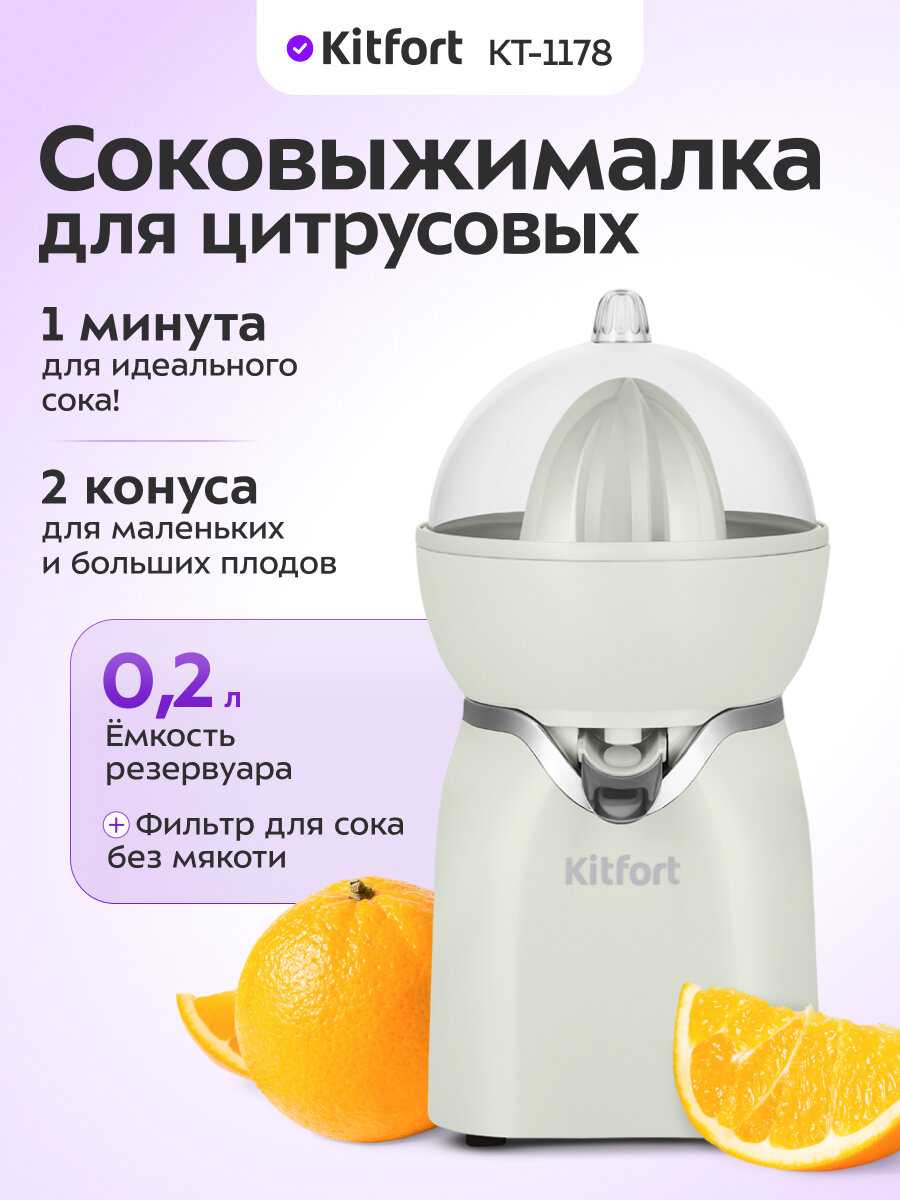- + Соковыжималка для цитрусовых Kitfort КТ-1178 — отличный помощник на кухне! Устройство компактное, стильное и очень удобное в использовании. Мощность достаточная для быстрого отжима сока из апельсинов, лимонов и грейпфрутов. Легко разбирается и моется, что делает процесс ухода за ним простым и быстрым. Благодаря надежной конструкции и качественным материалам, соковыжималка работает тихо и эффективно. Рекомендую всем, кто ценит свежие натуральные соки и хочет упростить себе приготовление напитков дома!