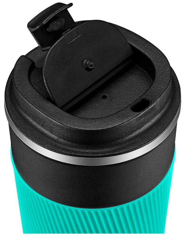 Купила эту кружку мужу, он постоянно берет с собой на работу чай или кофе. Мне она очень понравилась внешним видом, стильная, без всяких ненужных рисунков и т.п., бирюзовая вставка отлично дополняет ее. Кружку крутили, вертели, с целью проверки прольется или нет, ничего не пролилось. Единственный ее недостаток - не помещается в подстаканник в машине. Кстати, для меня, как для человека, который моет эту кружку, огромный плюс - очень удобно моется, рука спокойно пролезает и спокойно мою дно кружки. Это был один из критериев выбора, т.к. до этого была другая, очень узкая и ее невозможно было нормально помыть. В общем, я довольна, муж тоже. Рекомендую к покупке.