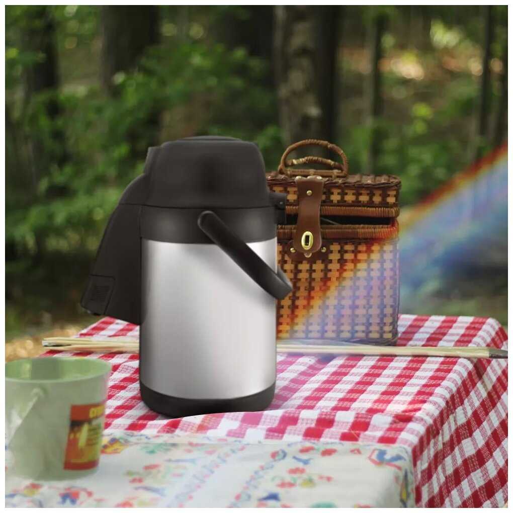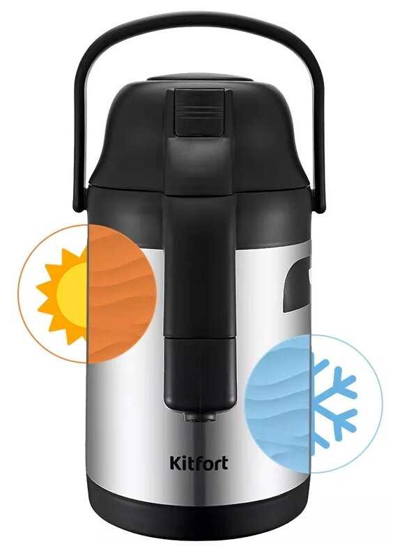 - Ручка с термоизоляцией позволяет переносить термос с кипятком без перчаток.