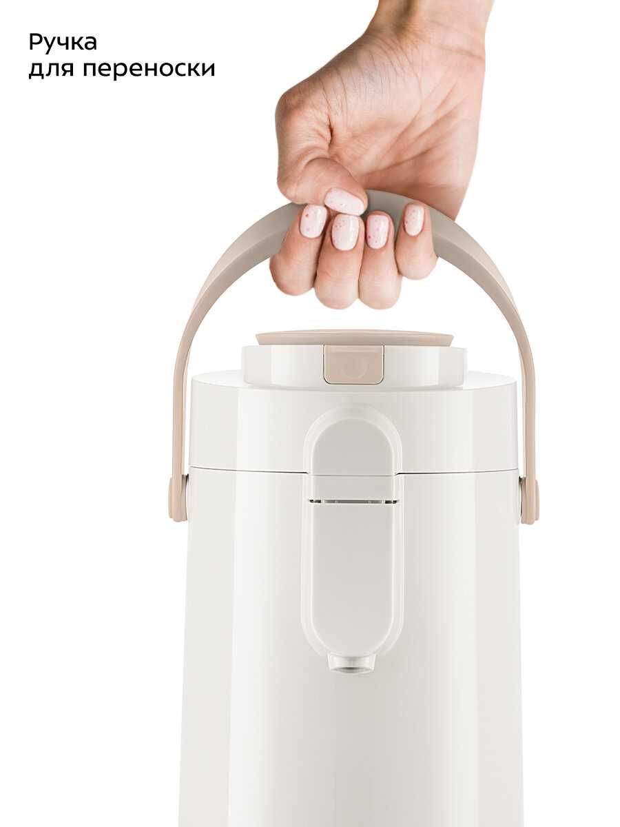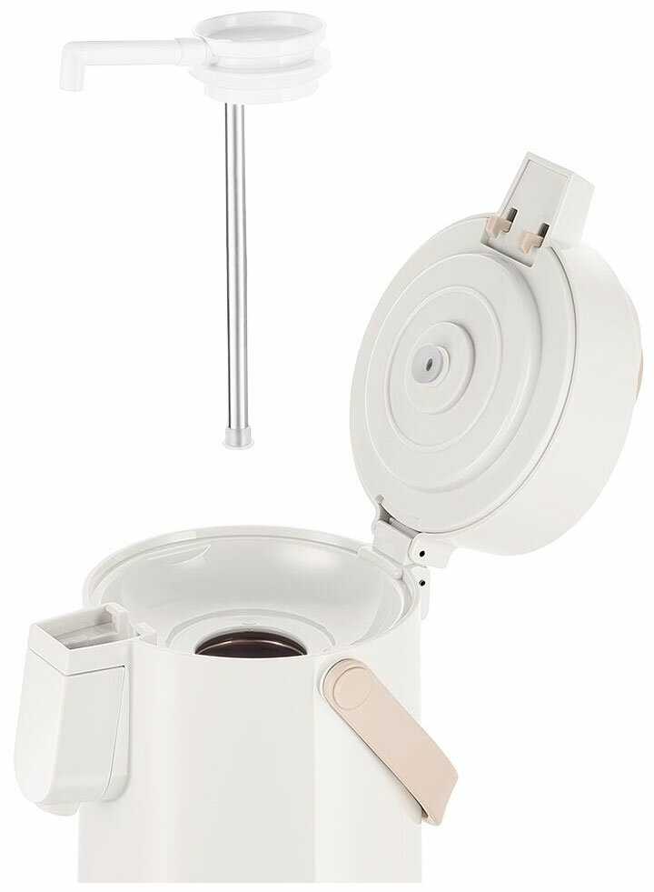 - + Термос хорошо сохраняет тепло напитков. Когда налил 1,5 литра кипятка, он простоял в комнате 12 часов, и температура воды упала всего до 80 градусов, что вполне прилично. Никаких лишних запахов от пластика не чувствуется. Носик выдвижной, благодаря чему наливать можно удобно, не удерживая стакан в воздухе. Помпа работает отлично — одного нажатия хватило, чтобы заполнить большую кружку. Верхняя крышка снимается легко, что упрощает чистку устройства.