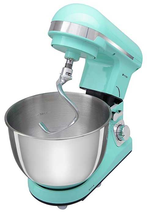 Мечта сбылась! Вот он планетарный миксер! Начну с внешнего вида: не смотря на то, что бирюзовый цвет очень люблю, но это никак не относится к кухонным приборам. Но в другом цвете миксер стоил на тот момент гораздо дороже, пришлось взять такой. Сначала долго мучилась, чтобы надеть насадку, боялась сломать. Сейчас немного привыкла. Шумит он, конечно, очень громко. Но много плюсов: развязаны руки пока взбиваются яйца, готовлю муку и т.д. Крем Чиз сделал мне за 2,5 минуты. Яйца взбивает тоже очень хорошо. Делала только дрожжевое тесто на хлебы, батоны, булочки и т.д. Справляется хорошо, я довольна. Тугое тесто на пельмени и вареники не пробовала, если честно, боюсь. На первых трех скоростях можно готовить только тесто. Яйца будут просто вертеться кругом венчика. Очень ощутима разница между четвертой и пятой скоростями. Но я это не пишу, как минус, скорее, это так должно быть. Подводя итог, могу сказать: хороший миксер за такие деньги.