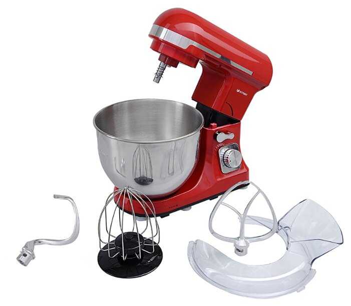 - + Яркий, насыщенно-красный планетарный миксер Kitfort.