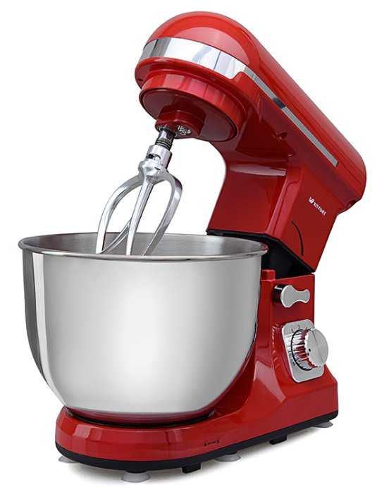 - + Яркий, насыщенно-красный планетарный миксер Kitfort.