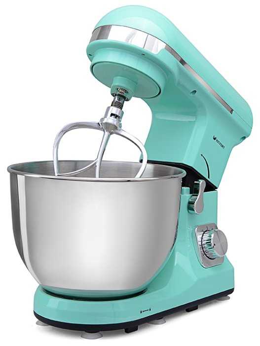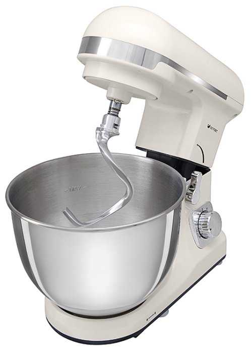 В наборе 3 насадки: венчик для взбивания, лопатка для перемешивания и крюк для теста.