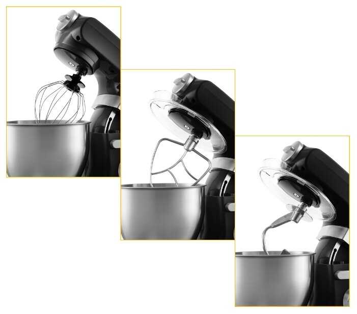 - Подходит для деликатных задач (например, взбивания сливок) и интенсивного замеса.