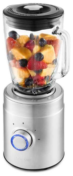 - + Хорошая стеклянная чаша, симпатичный блендер. Молит хорошо, быстро, не сильно шумно. При работе не двигается по столу, стоит на месте.