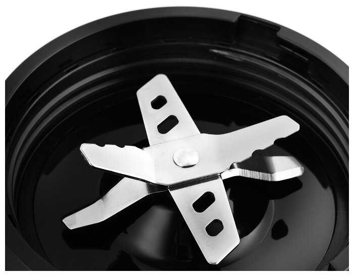 - + Высокая мощность, в то же время демократичная цена. Комплектация тоже понравилась: две чаши, и даже две крышки для того, чтобы сразу пить приготовленный напиток, считаю это очень удобным. Перемалывает все, мне очень нравится, что блендер может измельчить даже лед и замороженные ягоды/фрукты, так как люблю делать фраппе и смузи. Хочу попробовать перемолоть кофе, уверенна, что блендер не подведет.