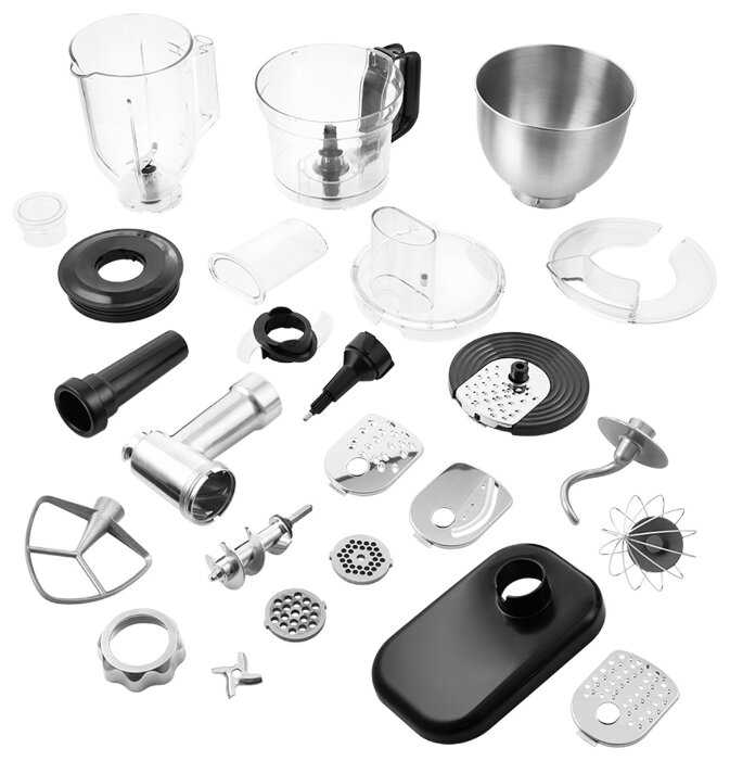 Каждая часть (мясорубка, тестомес, блендер и терка) полностью полноценное устройство и не страдает от того, что это часть комбайна, а не отдельное - - Блендер сильно шумит. Соседи, наверное, думают, что я включаю перфоратор, ну очень громко.
