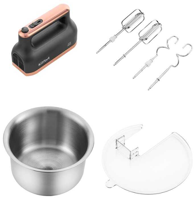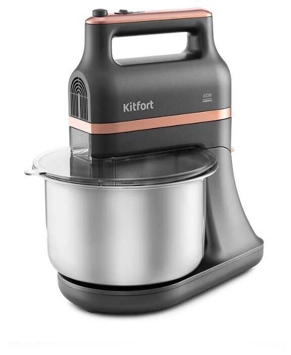 Выбирал из достаточно большого количества миксеров в ценовой категории от 3000 до 6000 р мощностью не менее 400 Вт, с чашей из нержавеющей стали . Чуть не купил более дешевый, с виду и по описанию сравнимый с Kitfort. Но не поленился, объехал 3 магазина, подержал в руках всех претендентов, и этот однозначно оказался лучше, хоть и не дешевле некоторых из них. Решающими параметрами, отличающими этот миксер от всех просмотренных, даже более дорогих и именитых стали: толщина, вес, метод крепления чаши; качество пластика корпуса миксера; метод и надёжность крепления миксера к подставке, размер и качество приводной шестерни; люфт насадок в миксере при работе; добротность венчиков; расстояние венчиков до дна чаши
