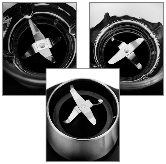 - Стеклянные чаши для блендера, кофемолки и измельчителя (толщина стекла 4 мм) обеспечивают долговечность и отсутствие посторонних запахов.