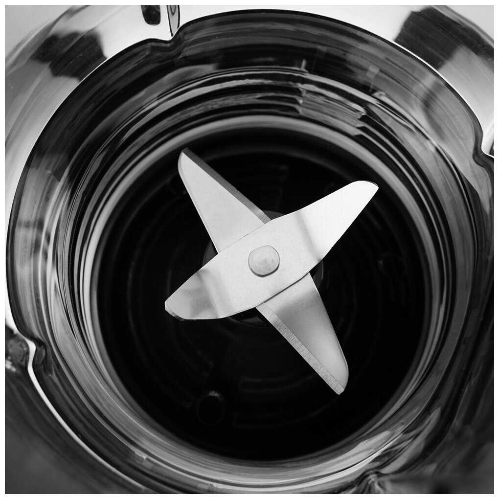 Массивность стеклянной чаши впечатляет, взяв в руки понимаешь - Вещь; Выглядит солидно; На столе стоит уверенно; лёд крошит и на первой скорости(хотя это не удивительно - 600 ватт); приятно удивила крышечка для реактивного вброса дополнительных ингредиентов наличием на ней делений; ну и далеко не самое последнее, а может и первое - крайне привлекательная цена.