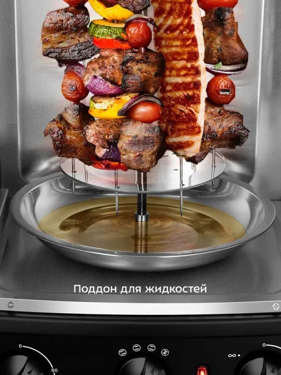 | Особенности : | вертел, поддон для сбора жира, решетка |