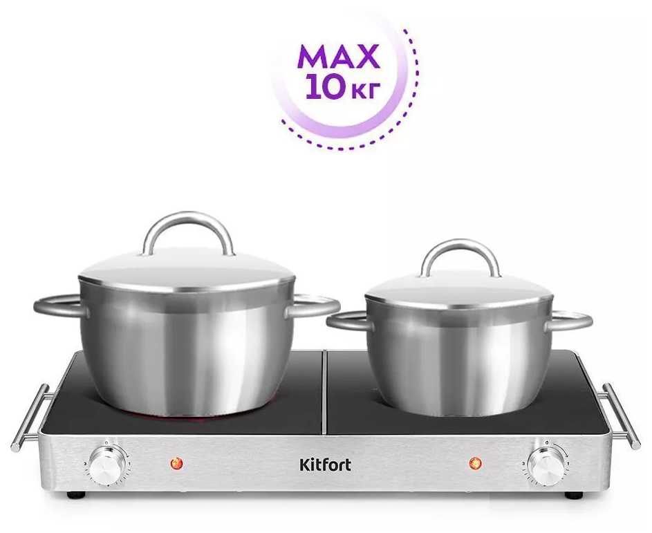 - + Компактный и стильный дизайн электрической плитки kitfort. Хороший нагрев комфортом. Все готовится быстро. Хорошая длина шнура.пркупкой очень довольна...