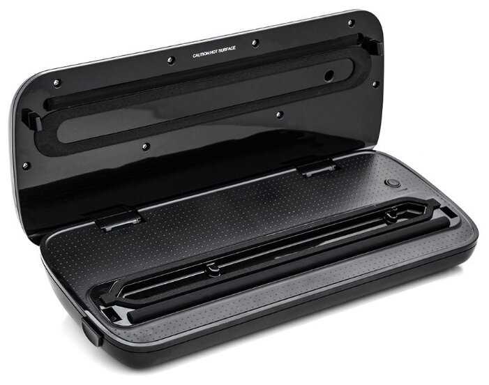 Вакуумный упаковщик имеет стильный дизайн, выполненный из качественных материалов. Черный цвет прибора отлично сочетается с моей кухонной техникой.
