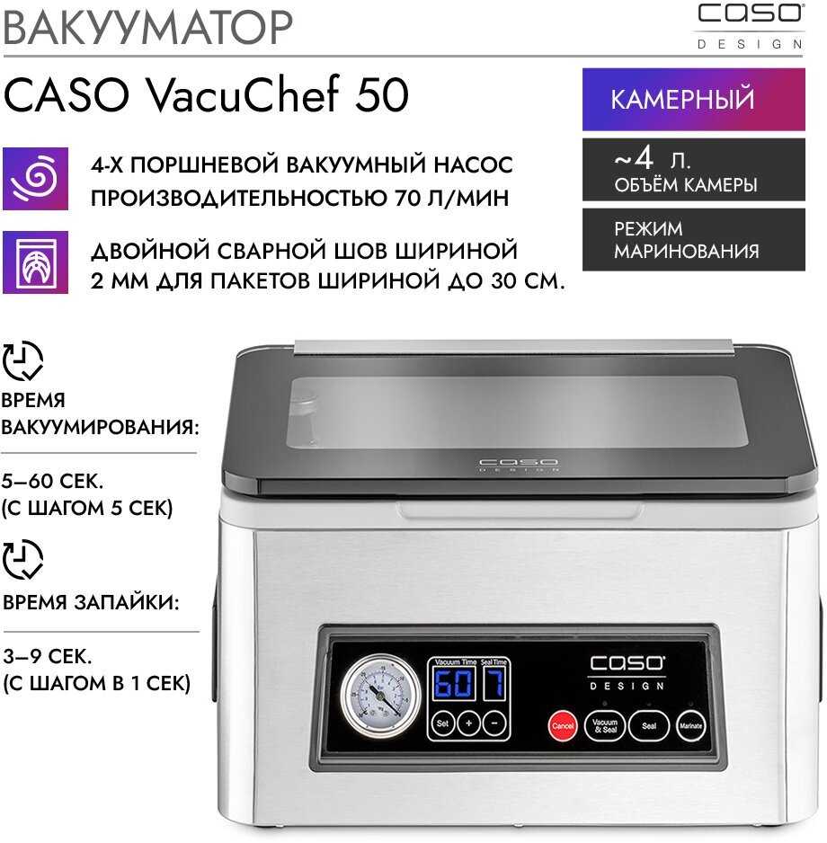 - Совместим с пакетами других брендов (например, Caso), что упрощает поиск замены.