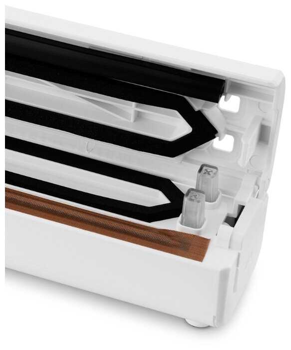 Особенности: Надежно упаковывает продукты и герметично запаивает пакеты. Из недочётов только то, что не предусмотрен фиксатор для пакетов.