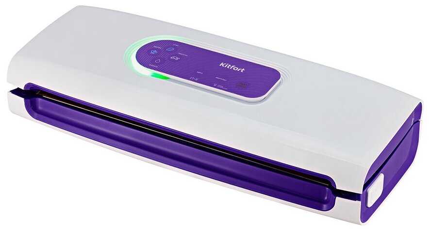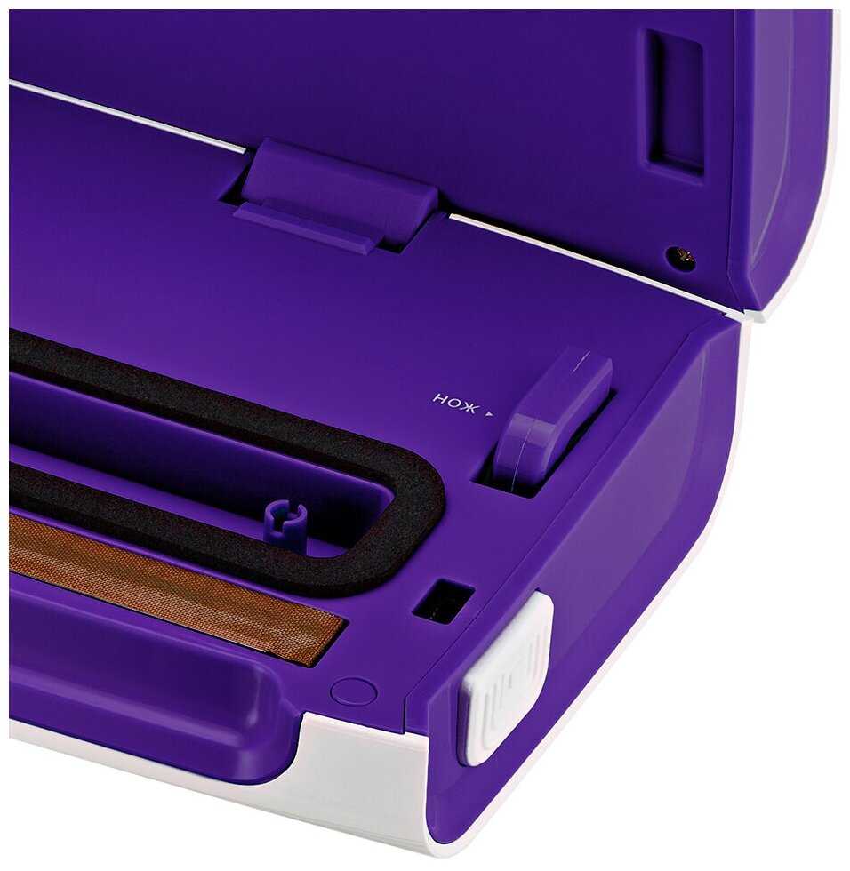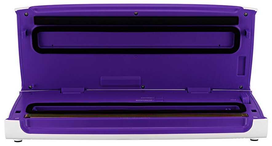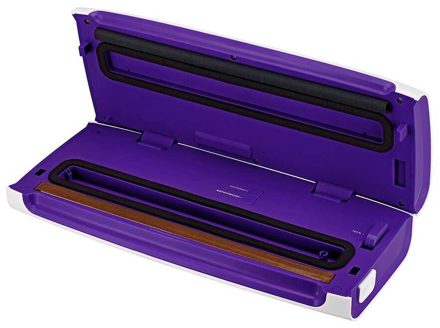 - + можно вакуумировать как сухие так и влажные продукты. Также есть трубочка для посуды с вакуумной крышкой. Приятный белый с фиолетовым цвет.