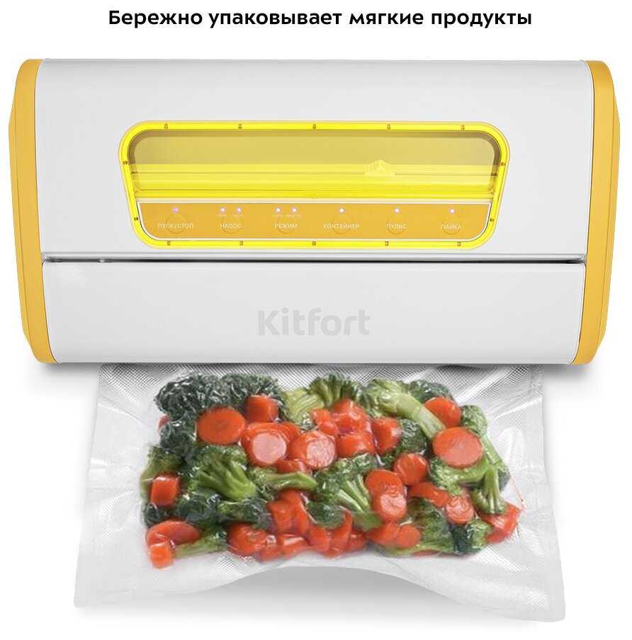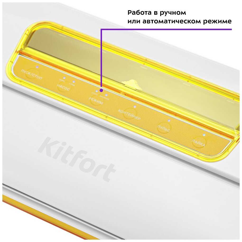 Долго выбирал в этой ценовой категории. А как только увидел Kitfort KT-1518-2, сразу заинтересовался, что за зверь такой. Во первых красивый внешний вид, веселые цвета на выбор. У других фирм в основном черные да серебристые. Прочитал характеристики и описание, всё как доктор прописал. Тем более Российский производитель. Сомнений не осталось, надо брать, и всем советую! Сборка отличная, пластик на ощуп приятный, а вот кабель можно было по длиннее сделать, но не критично. За время эксплуатации зарекомендовал себя, как надежный помощник. Много чего завакуумировали, всё компактно поместилось в морозильной камере. Рекомендую.