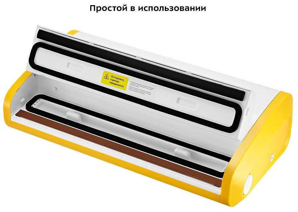 Двойной шов! Длина нагревательного элемента 31 см, встроенный резак для изготовления пакетов. Есть возможность работать на разных режимах: для сухих и влажных, для обычных и мягких продуктов. Подробная и понятная инструкция.