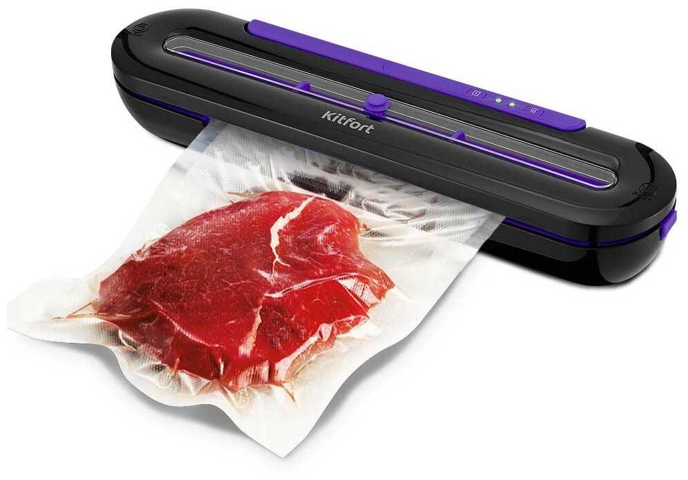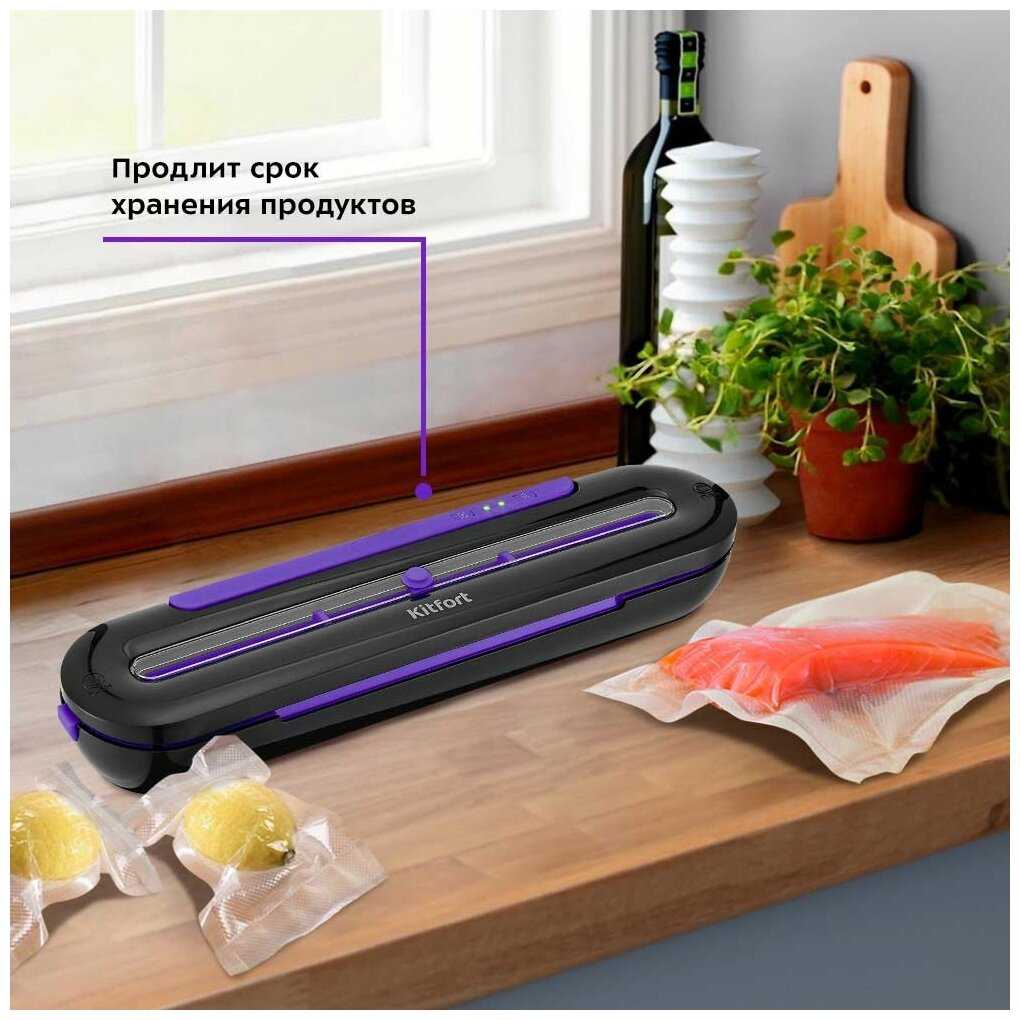 - Работает с пакетами разной толщины, включая фирменные Kitfort.