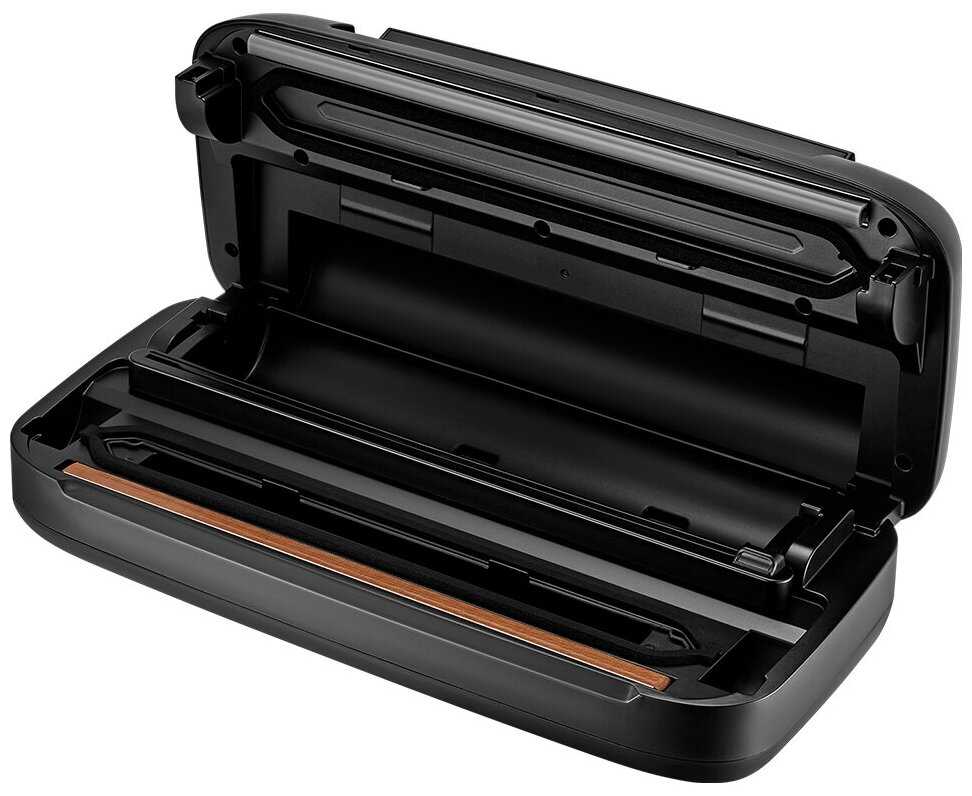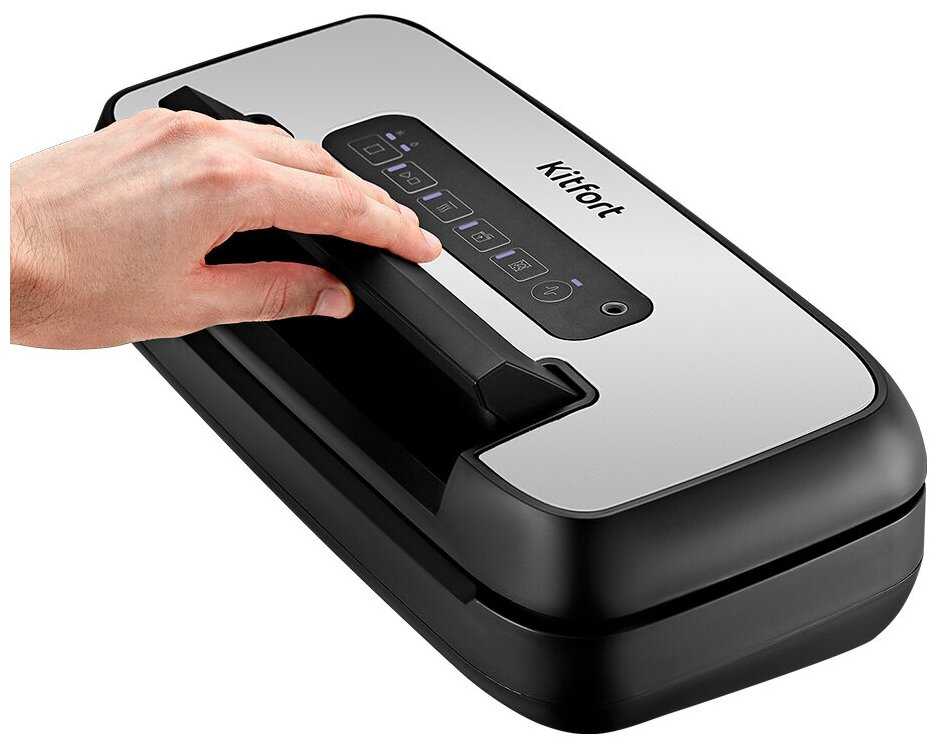Много пересмотрели разных вакууматоров, но остановились на данной модели. Мощный и довольно стильный вакууматор. Удобная ручка для открывания и закрывания, встроенный нож для разрезания пакетов. Занимает совсем немного места на кухне. Однозначно рекомендую этот вакууматор.