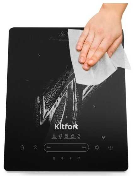 Встроенный вентилятор активен во время работы и продолжает охлаждать плиту 5–15 минут после отключения. Звук описывается как "жужжание" умеренной громкости: для большинства он не критичен (сравним с шумом вытяжки), но в тихих помещениях может быть заметен. Полное остывание поверхности занимает до 20 минут, при этом вынимать вилку из розетки до остановки вентилятора не рекомендуется. -