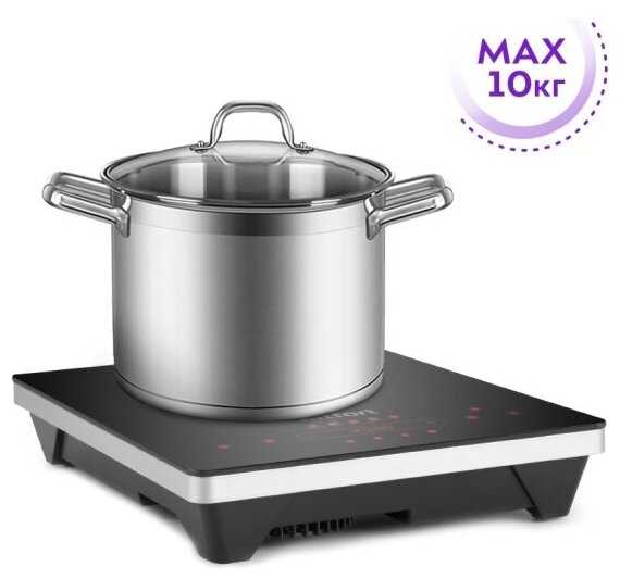 - 20 ступеней мощности (от 100 Вт до 2000 Вт) позволяют гибко настраивать температуру, например, удерживать суп на минимальном кипении.