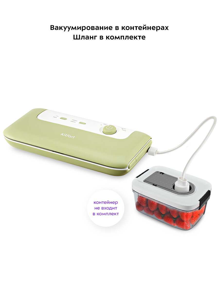 Добрый день! Около недели назад мы приобрели очень нужную и полезную на кухне вещь - это вакууматор КТ-1547 от фирмы Kitfort. За это короткое время уже успели опробовать все его функции. И пришли к такому выводу - почему не купили этот прибор раньше. При заготовках на зиму и в повседневной жизни просто необходим. Наш прибор работает отлично. Прост в управлении. Вакуумирует быстро, даже сырые продукты с откачкой жидкости. Стильный дизайн. Имеется отсек для того чтобы убрать шнур, и поэтому при хранении занимает мало места. Отличная цена. Может только немного шумный. Радуемся своему приобретению. И в доме имеем четыре помощника от фирмы Kitfort.