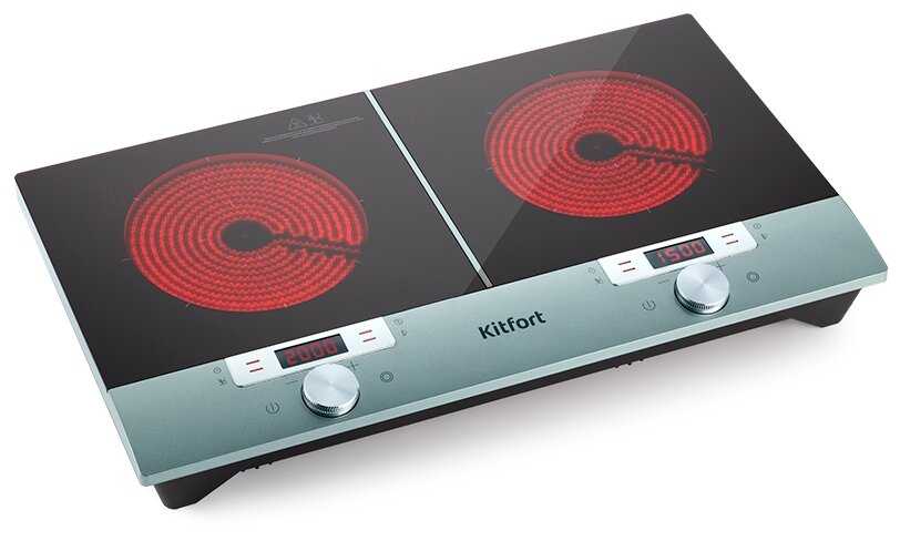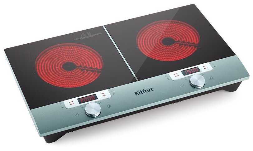 - Система автоматического отключения срабатывает при критическом нагреве, что продлевает срок службы плиты.