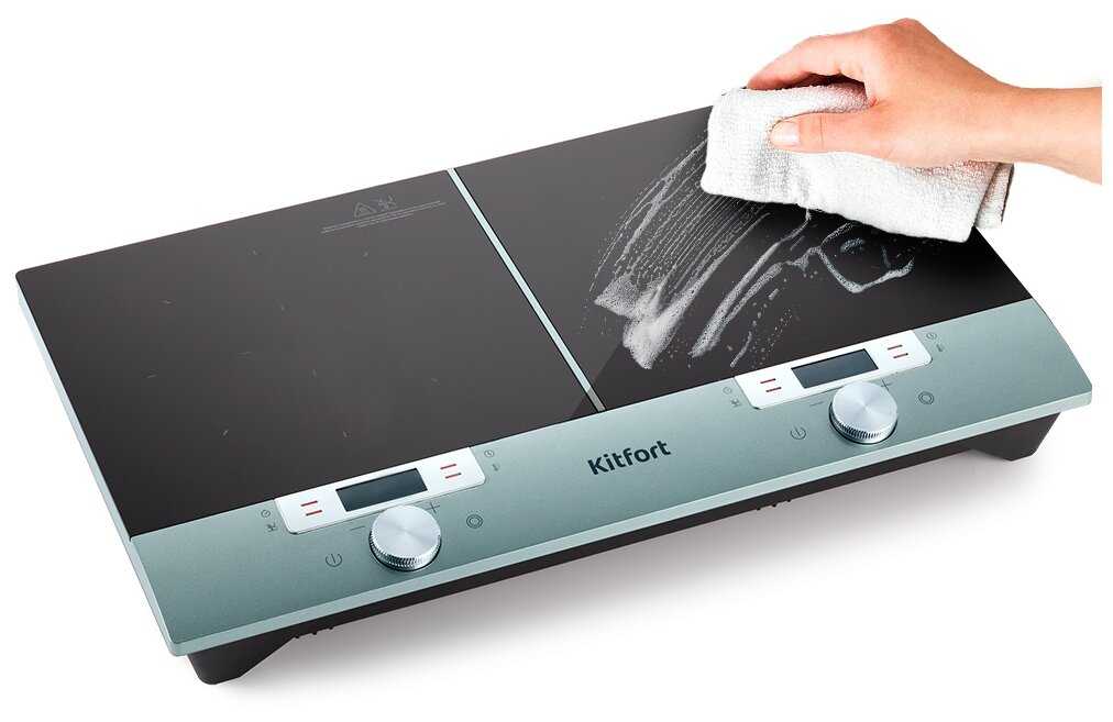 - Даже пригоревшие пятна легко удаляются после остывания плиты влажной тряпкой.